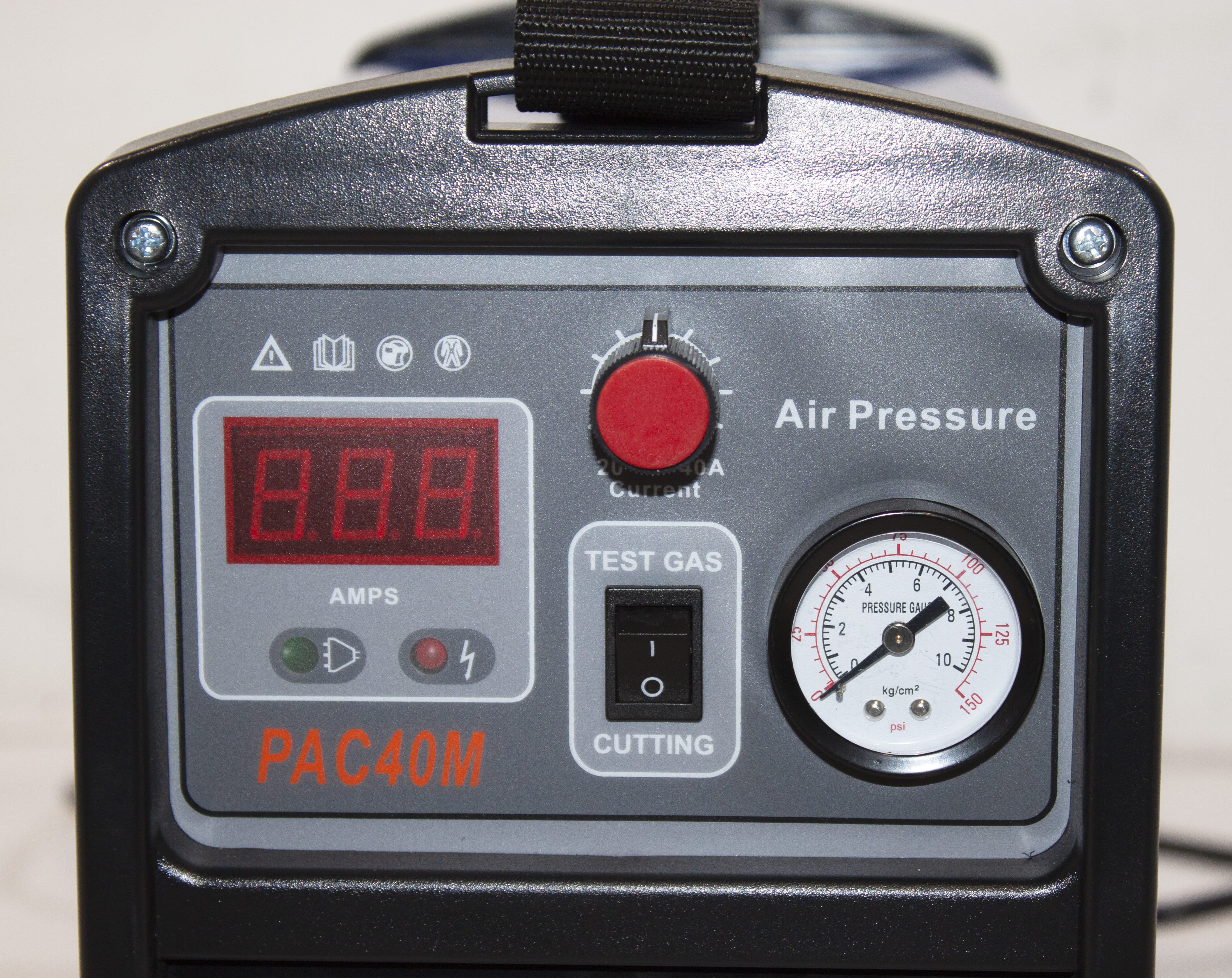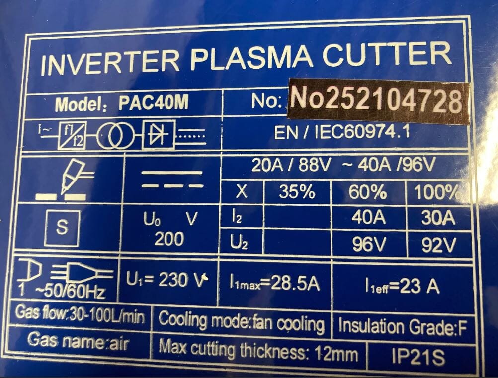 PAC40M är en liten men kraftfull och mycket pålitlig plasmaskärare från Magma-serien! På full styrka (40 på displayen) skär den lätt igenom 12 mm stål. Då måste den kopplas till en 16 ampere säkring. Maskinen behöver bara ett lufttryck på cirka 3 kg och en kompressor med en kapacitet på cirka 100 l/min. Den har beröringsfri start så det är bara att trycka på knappen och börja skära, färg och rost utgör litet hinder. Den skär alla metaller men inte lika tjocka som stål. Kapaciteten i aluminium är till exempel upp till 8 mm. Vikten på maskinen inklusive 4 meters slangepaket är blygsamma 11 kg!