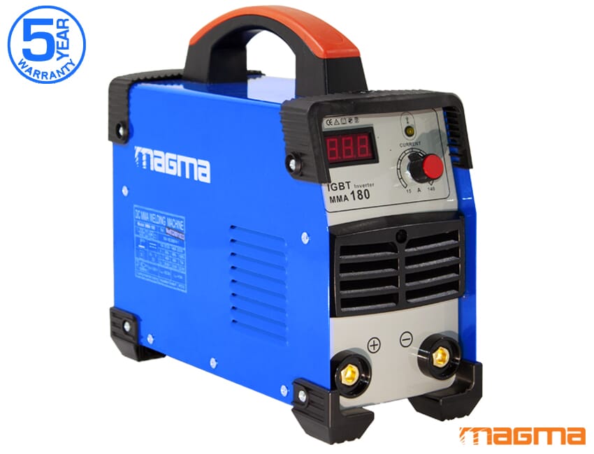 Detta är en helt ny modell från kvalitetsmärket Magma. En liten pinn-/invertersvets med 140 AMP. Bra fläktkylning och elektronik gör att man kan svetsa kontinuerligt med 2,5mm elektroder. Med 3,2mm svetsar man 3-4 elektroder i följd. Apparaten stänger av strömmen när den blir för varm, men slår snabbt på igen! En mycket bra maskin som passar de flesta hobbybehov, men det här är inte en maskin för att bygga en hjullastarskopa med, det har vi andra modeller till.