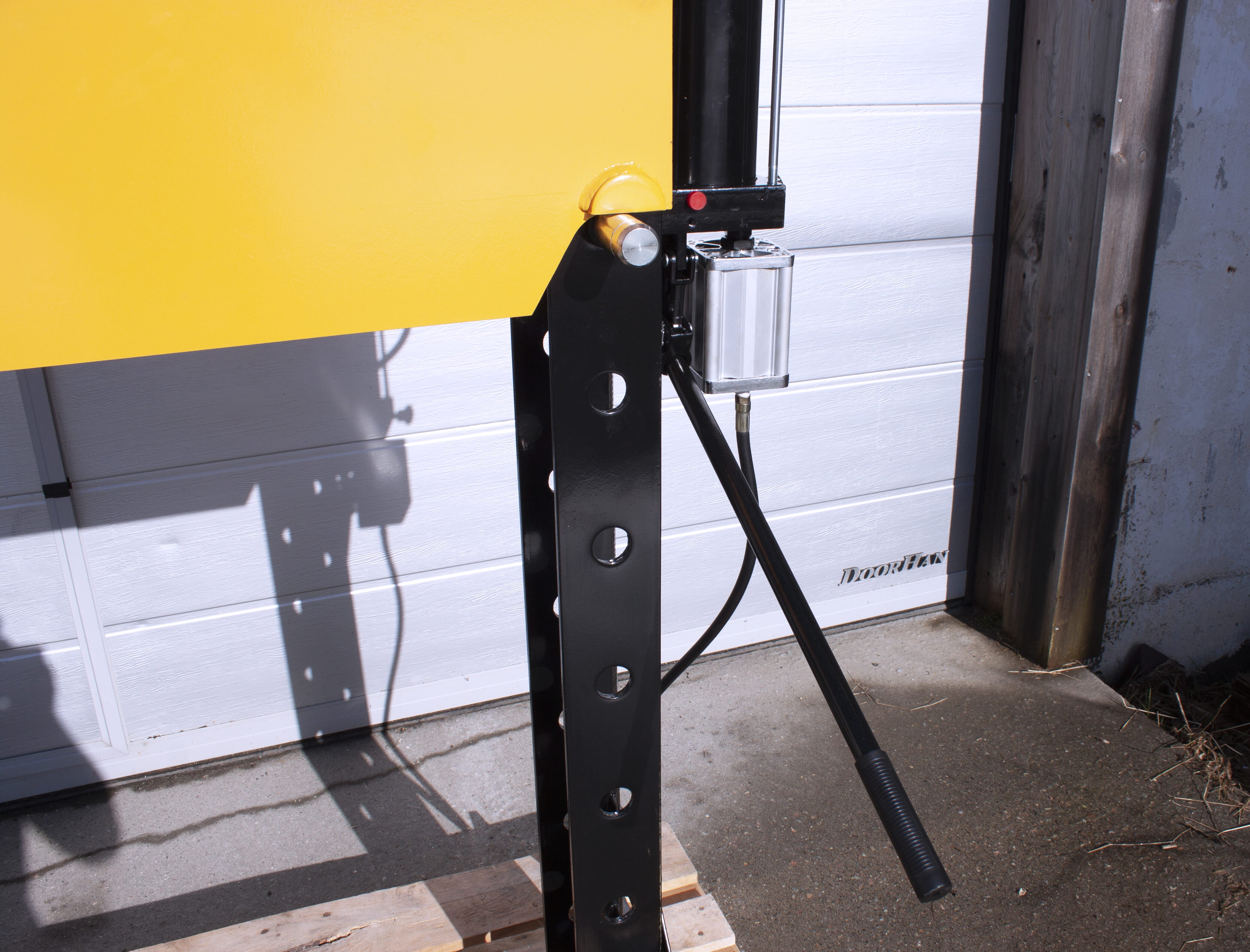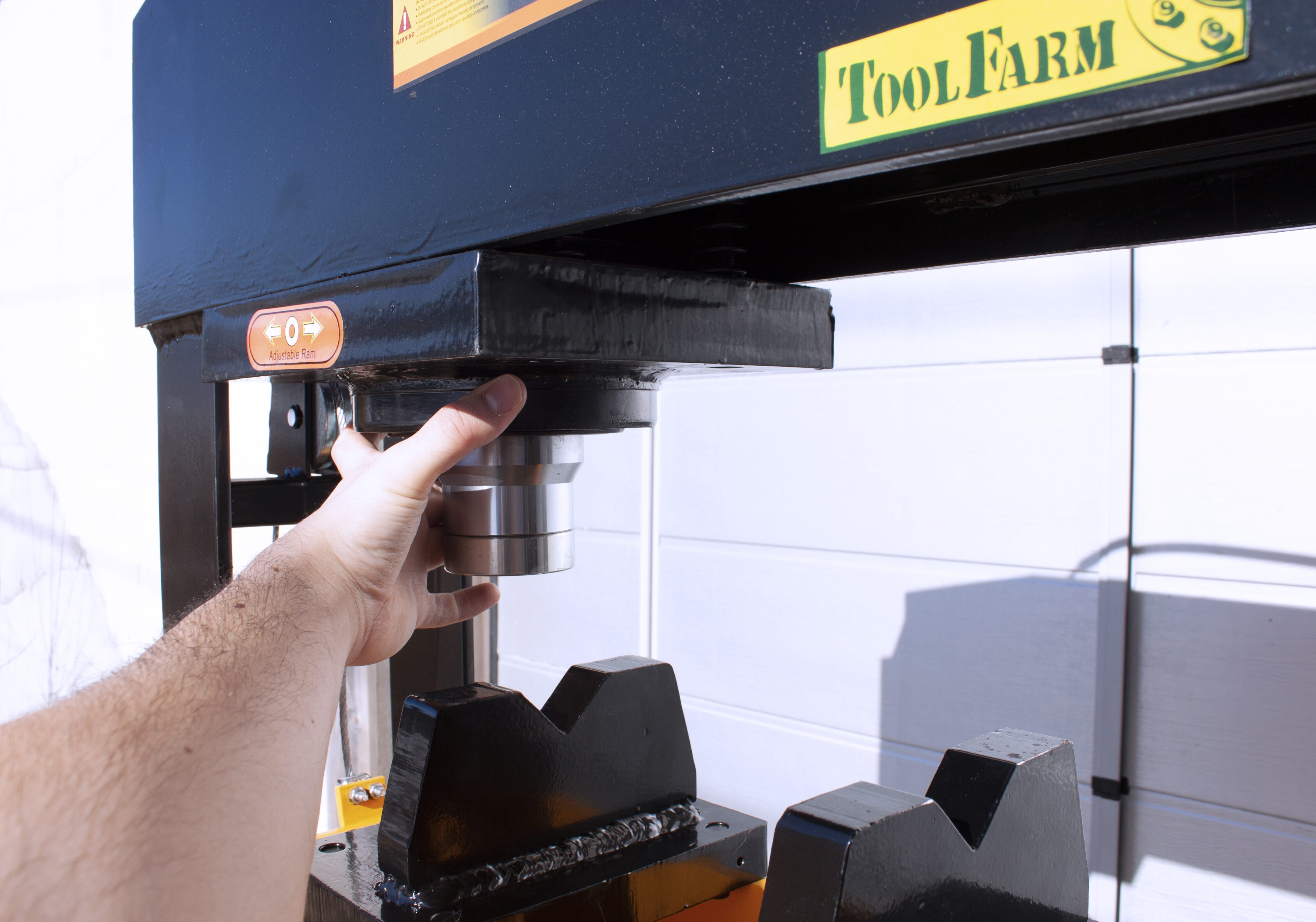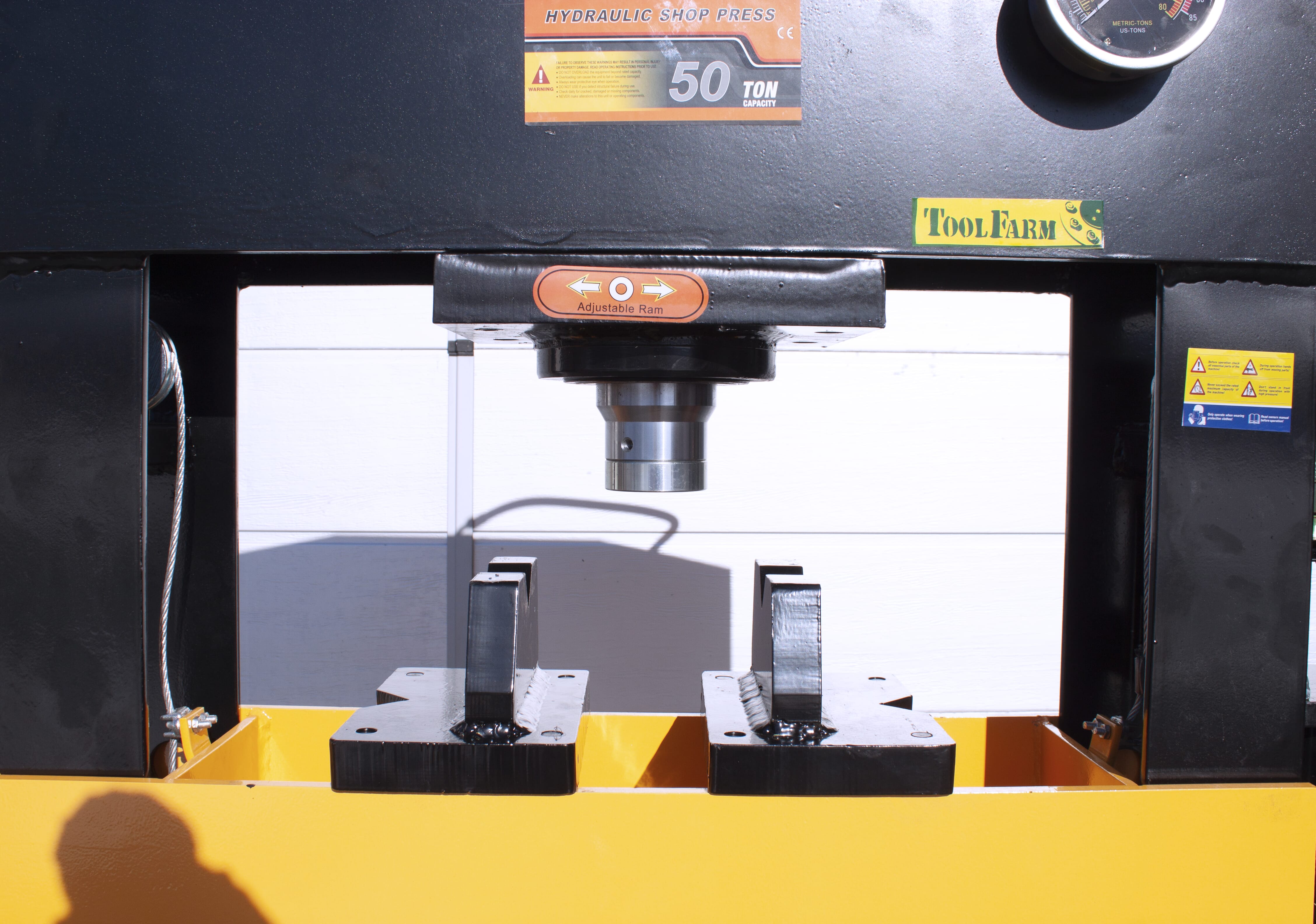 Stor hydraulisk verkstadspress med hög kvalitet i alla delar, för dig som vill vara säker på att ha tillräcklig kraft tillgänglig. Kolven kan förflyttas i sidled. Förutom manuell pump kan pressen även drivas med tryckluft – fotpedal för luftventil medföljer. Fördelen med att den även kan drivas med tryckluft är att man kan hålla ett säkert avstånd under pressarbetet. Ett pressdornset ingår också.
