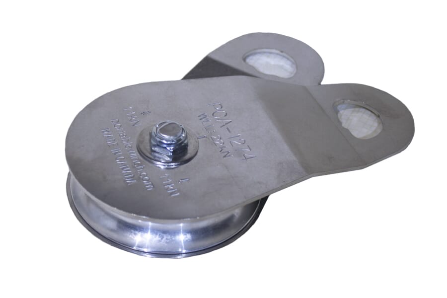 Arbetsbelastning: 2,2 ton, brottstyrka ca. 8 ton, skivdiameter: 100 mm. Blocken har sidoplattor i rostfritt stål och aluminiumskiva som passar för rep upp till 16 mm. Bronslager i skivan. Den bör användas med syntetiskt rep/tau för att förlänga livslängden.