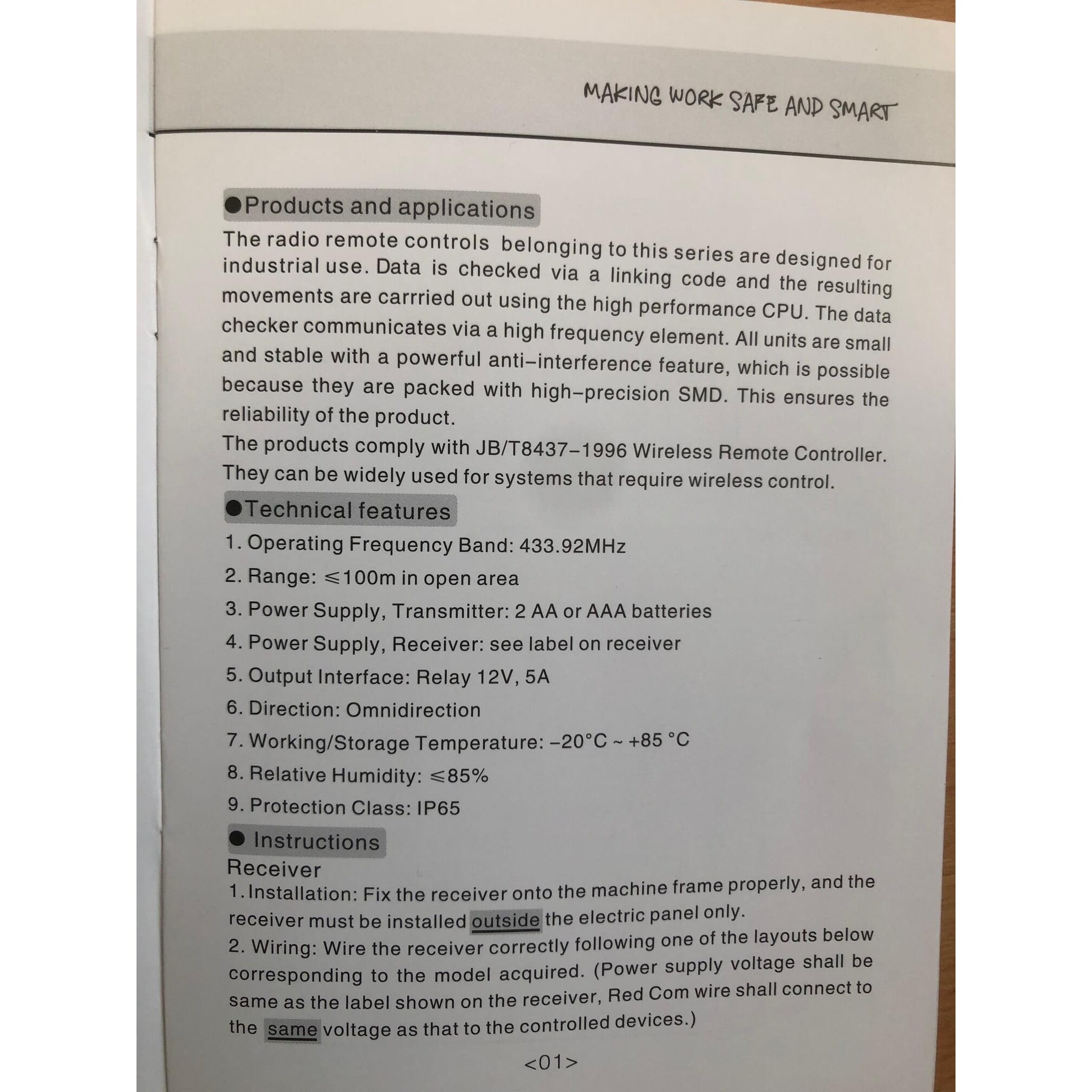 Trådlös styrning, industriell standard. Se utdrag ur bruksanvisningen och data på bilderna.