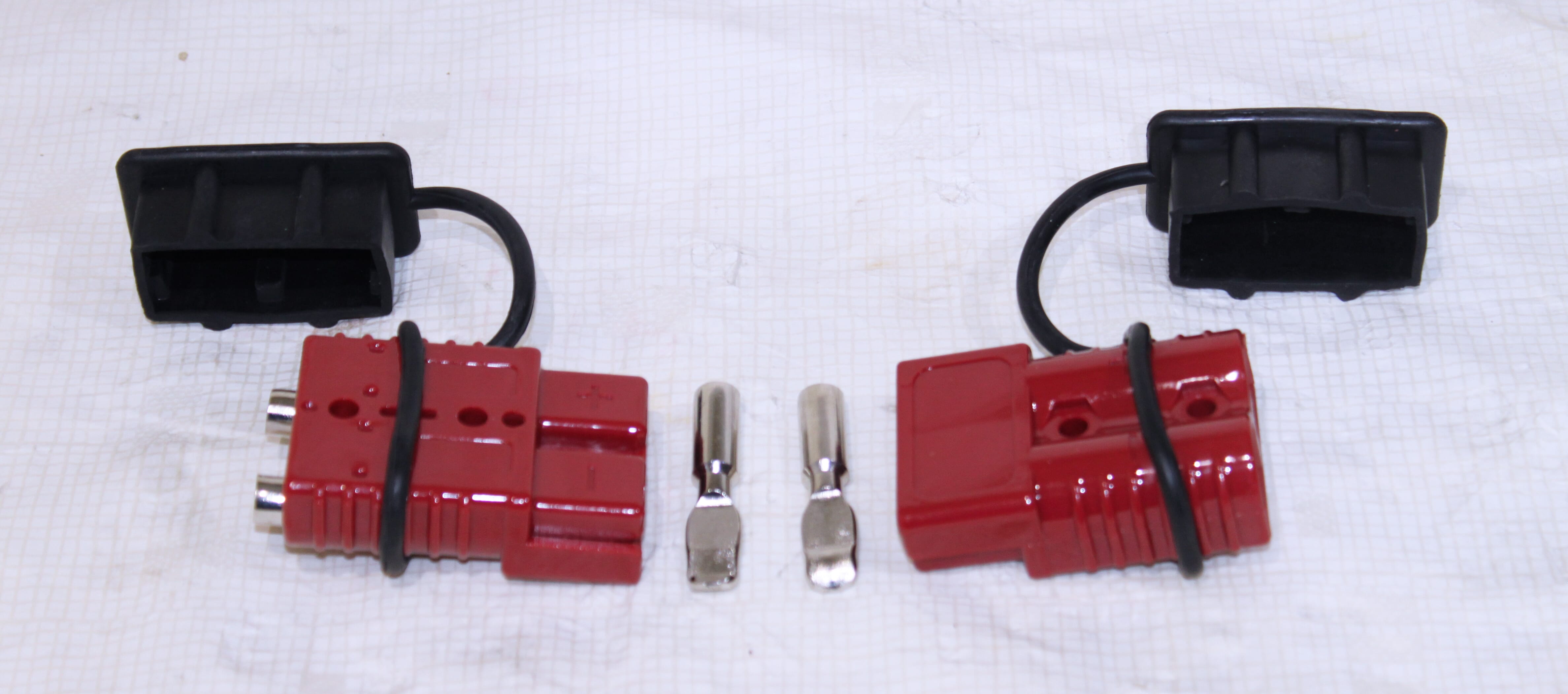 Måste lödas eller fästas med krympverktyg. Båda kontakterna är identiska och fungerar både som hona och hane. Passar ihop med vår batteri/vinsj-kabel artikelnummer 1197 och 1198, se tillbehöret nedan.