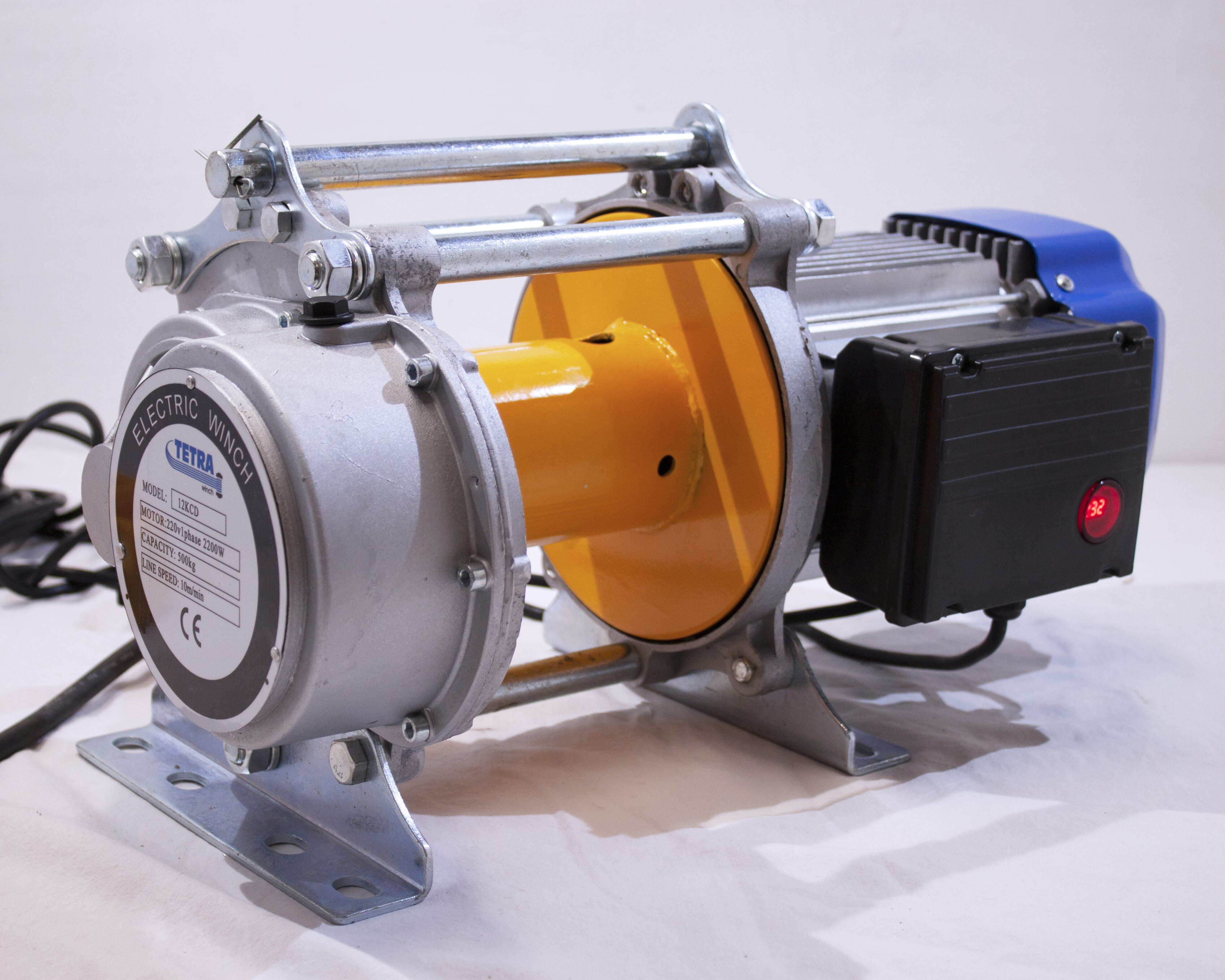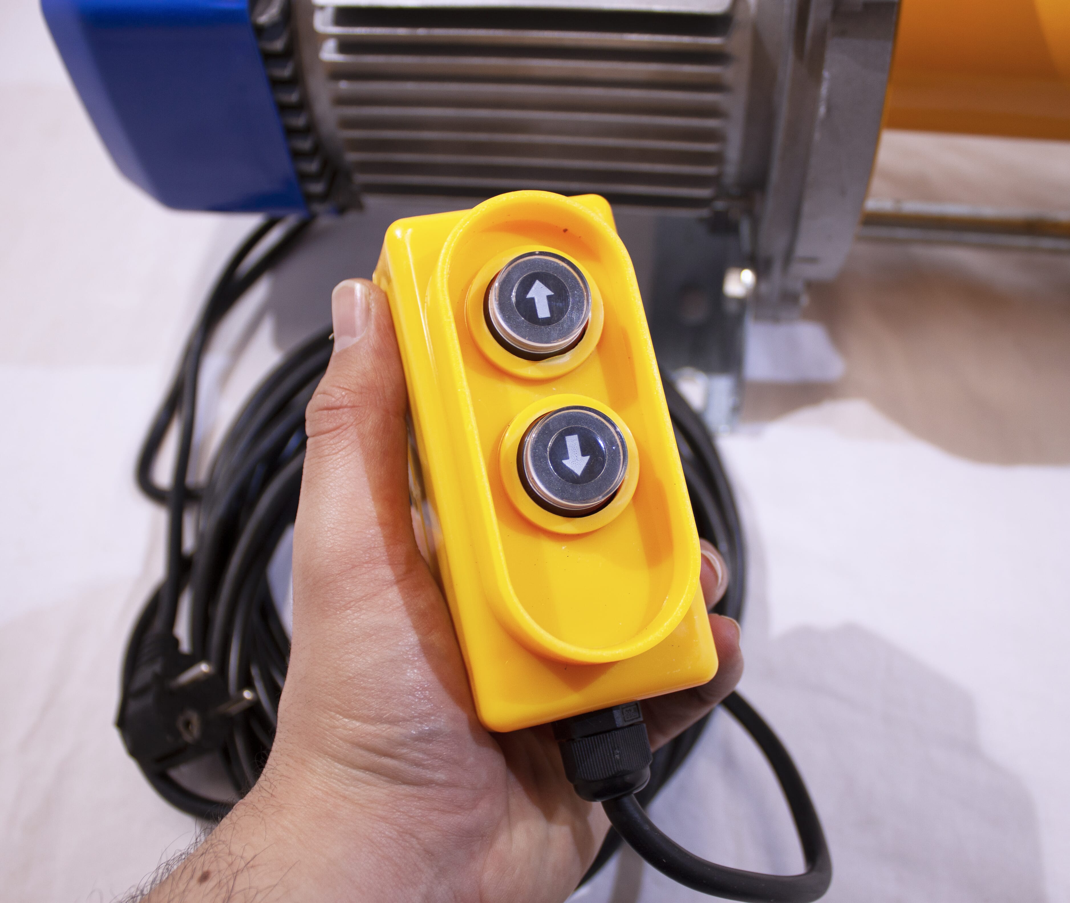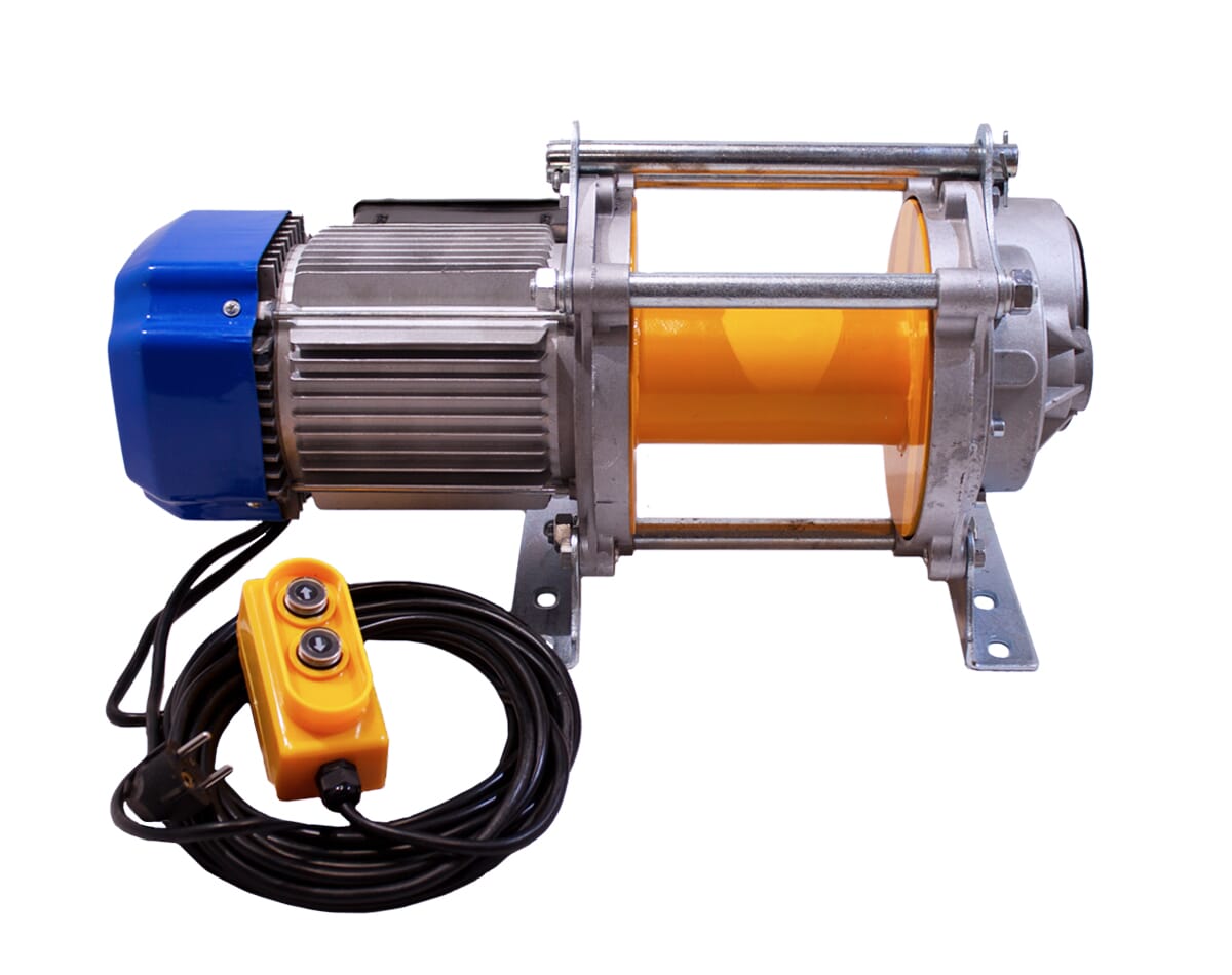 Vinsjen har full broms, så den stannar och låses när knappen släpps. Den är också låst när strömmen är avstängd. Levereras med manuell strömbrytare och 10 meters kabel för in- och utmatning.