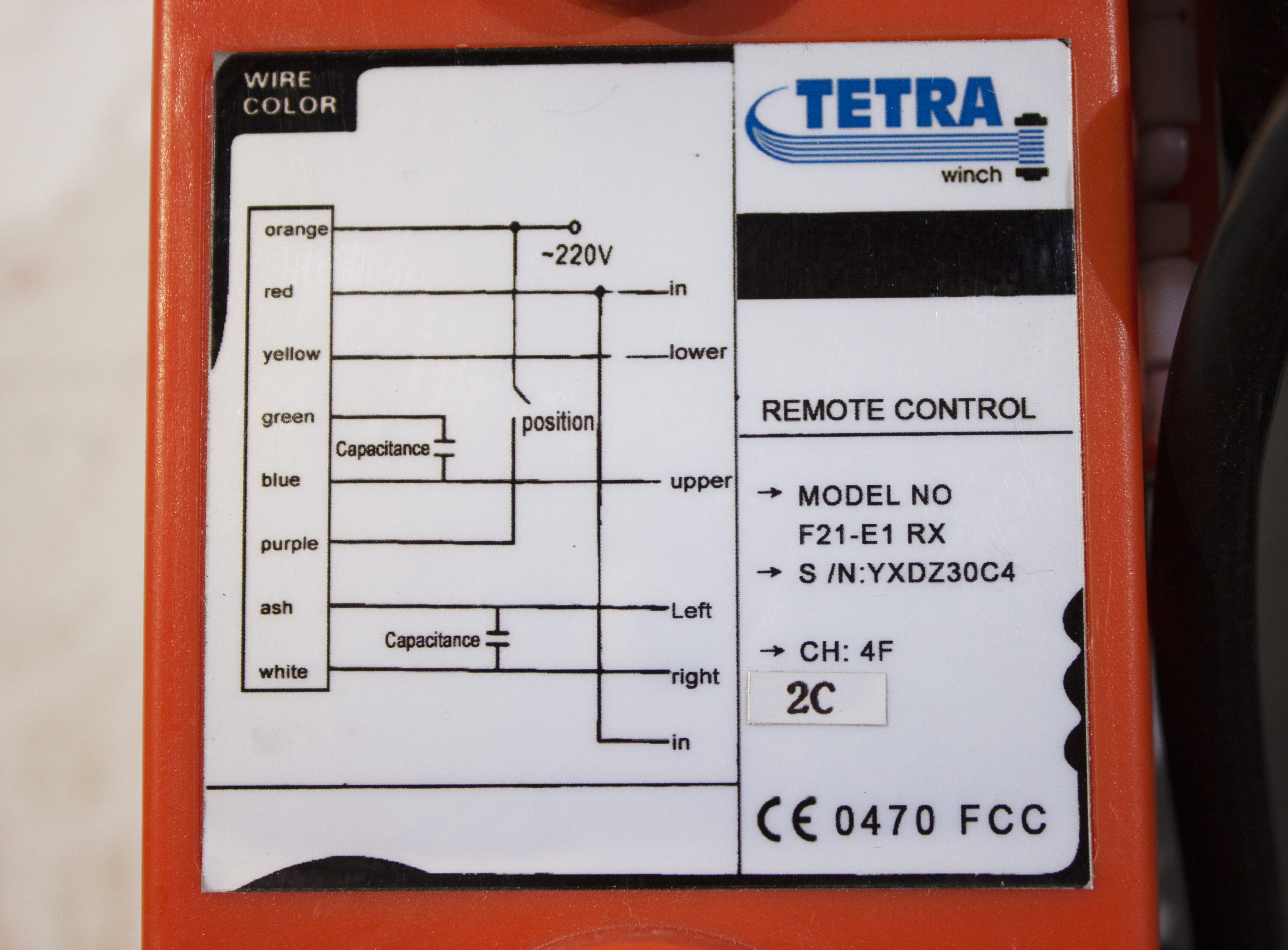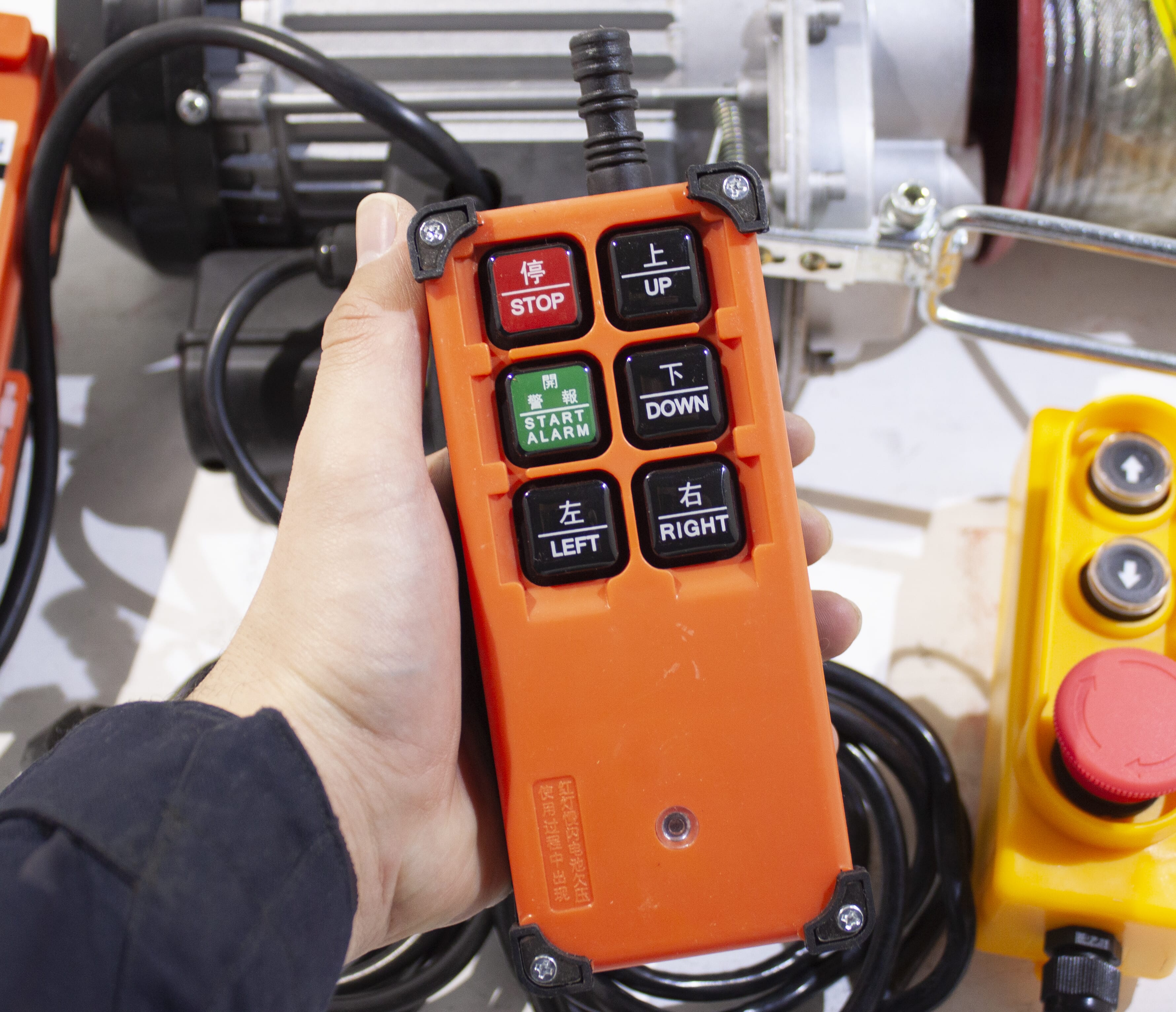 Stabil och bra radiostyrning med en räckvidd på 100 meter fri sikt. Det finns också en manuell styrbrytare. Sändaren är tät och kan användas under våta förhållanden. Använder 2 st AA-batterier. Levereras nu med standard 25 meter wire! Det finns plats för 30m 5mm wire på trumman, lyftkraften kommer då att minska till 250-300kg. Se syntetisk wire under tillbehör. Vi kan mot en extra kostnad på 250 kr montera på extra wire.