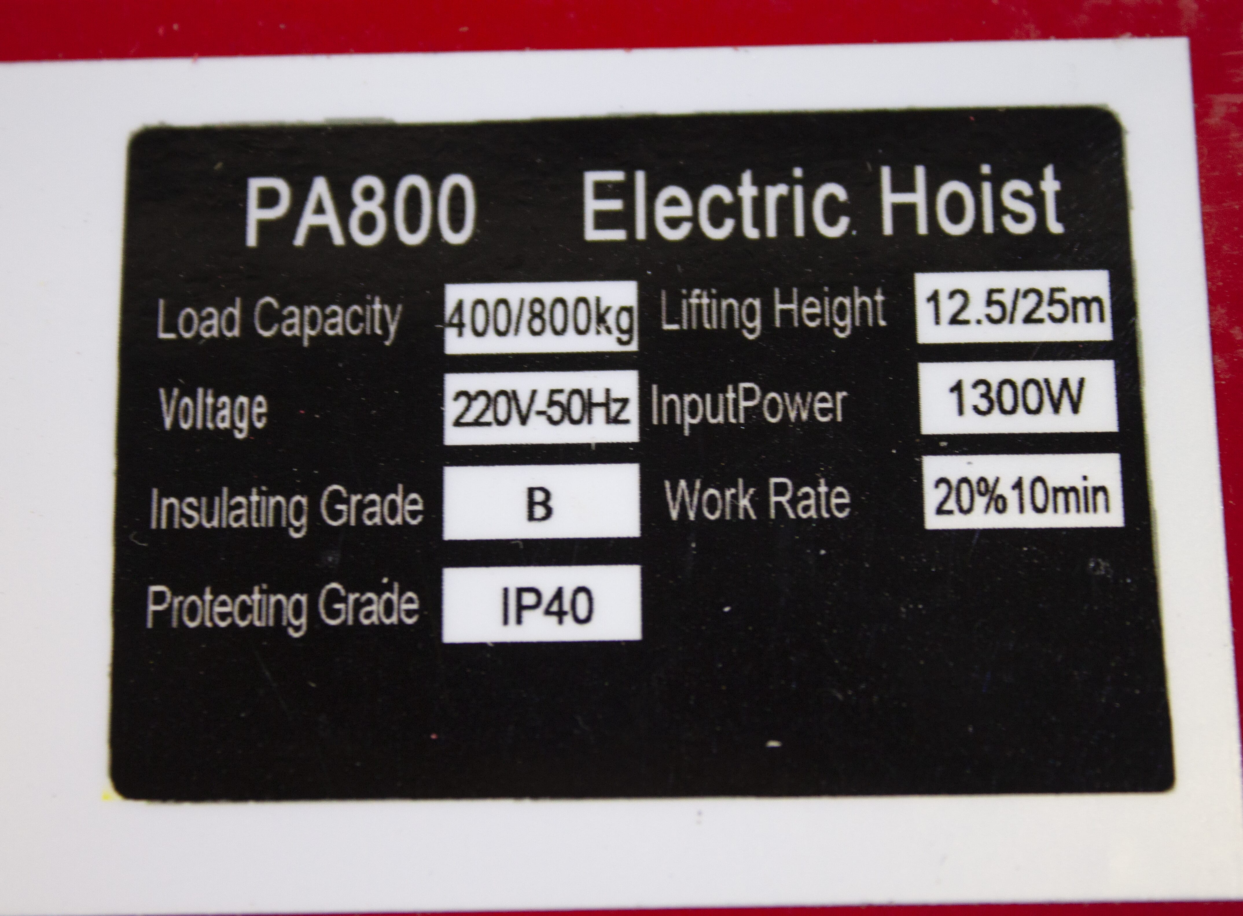 - Löftekraft enkel wire: 400 kg. Dubbel wire: 800 kg. Kastblock medföljer.